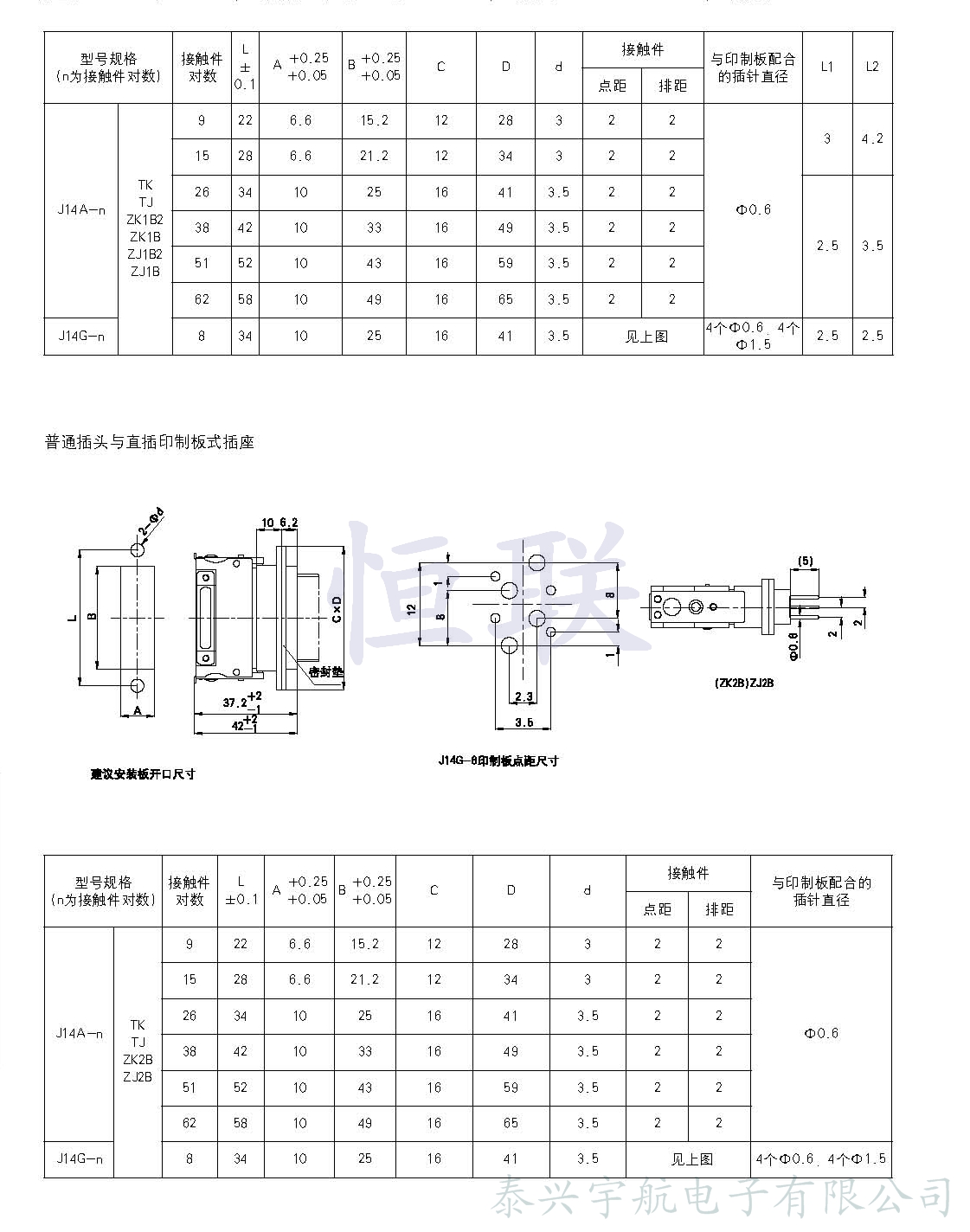 J14A、C、D、G、P系列矩形電連接器