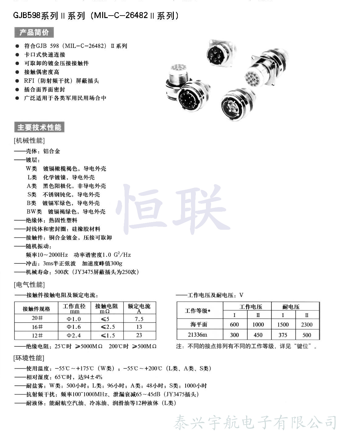 符合GJB 598(等效于MIL-C-26482)Ⅱ系列