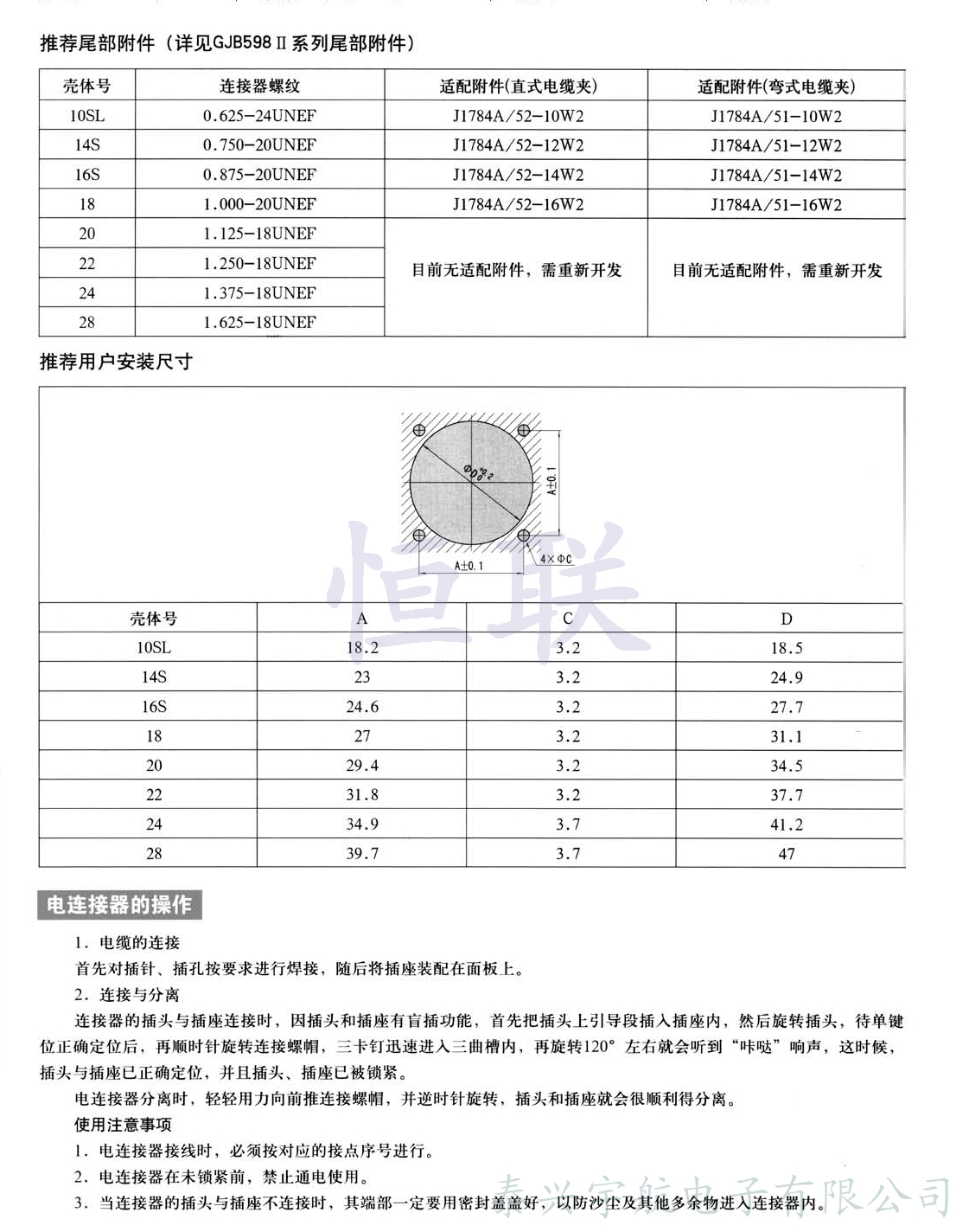 符合MIL-C-5015D(GJB600A),應(yīng)用于航空發(fā)動(dòng)機(jī)及其他高溫嚴(yán)酷環(huán)境。可裝熱電偶接觸件(除玻璃燒結(jié)密封插座)。插合面界面密封,防火和耐液體浸漬