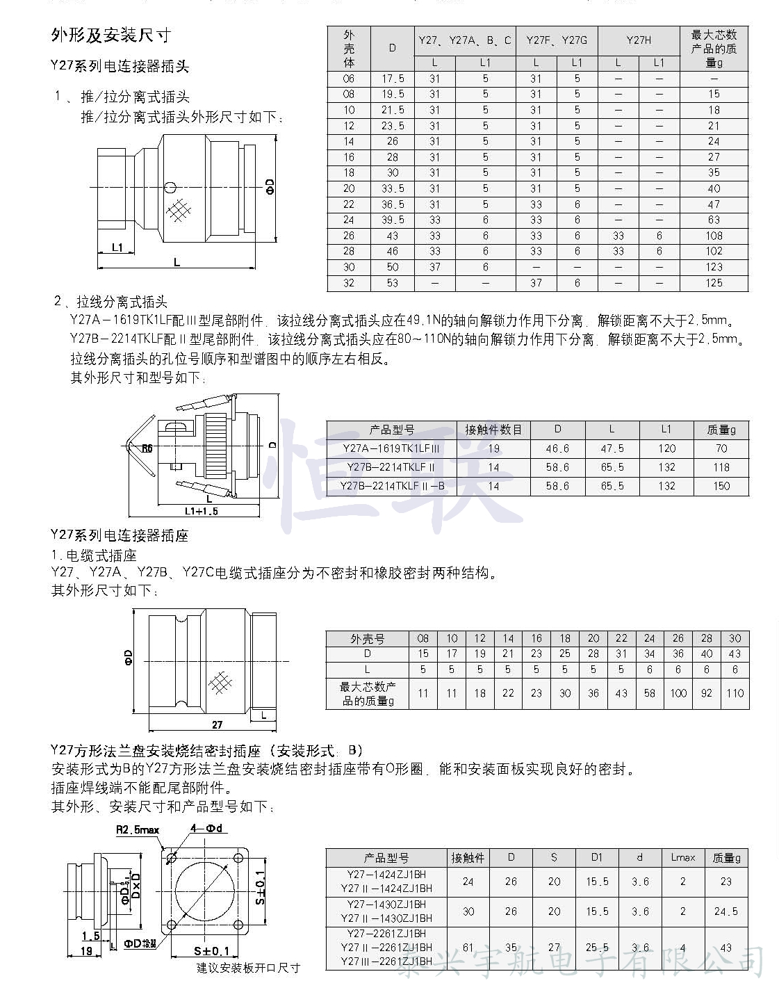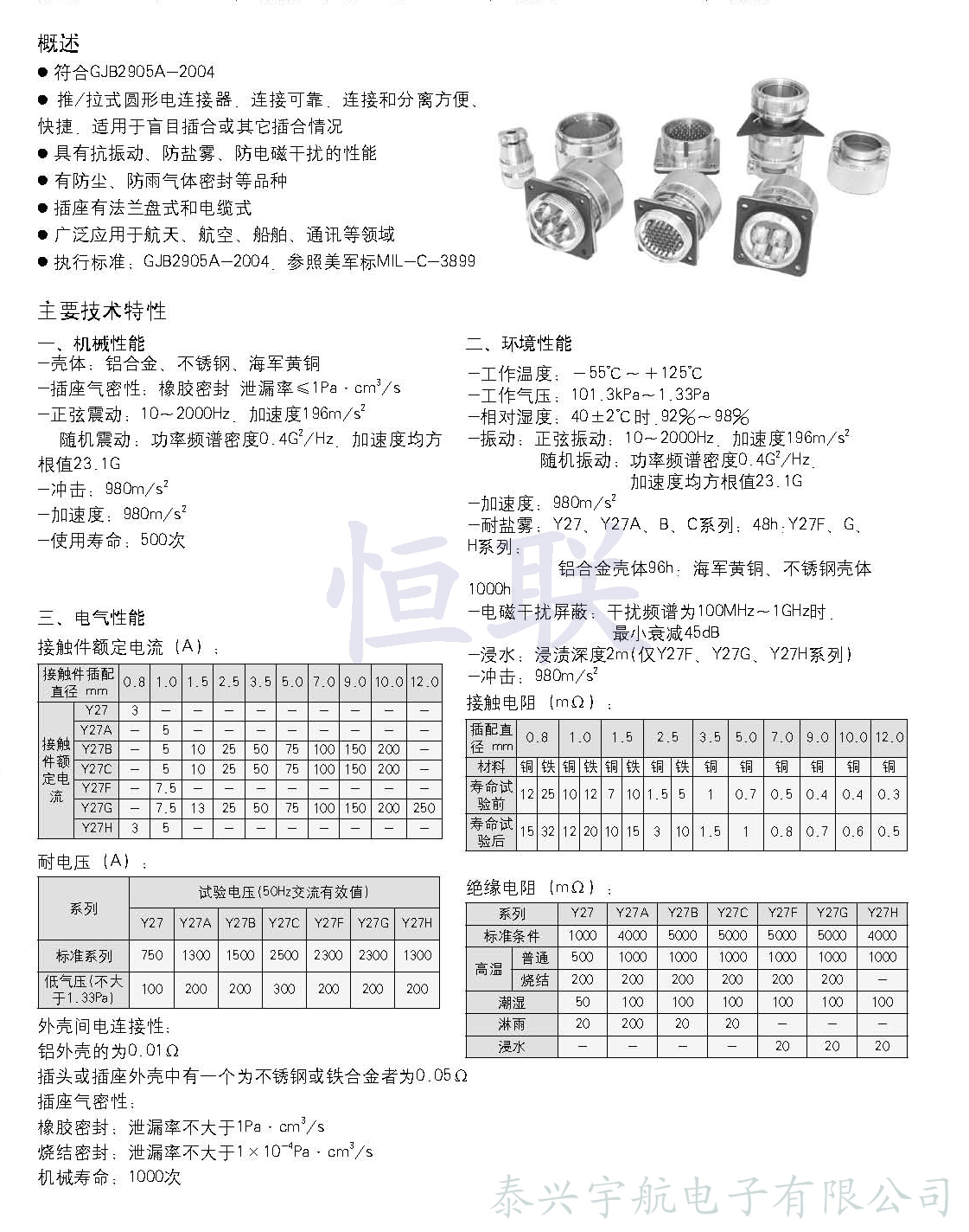 Y27F、G、H 系列電連接器適用于艦船環(huán)境,具有防水密封的性能;