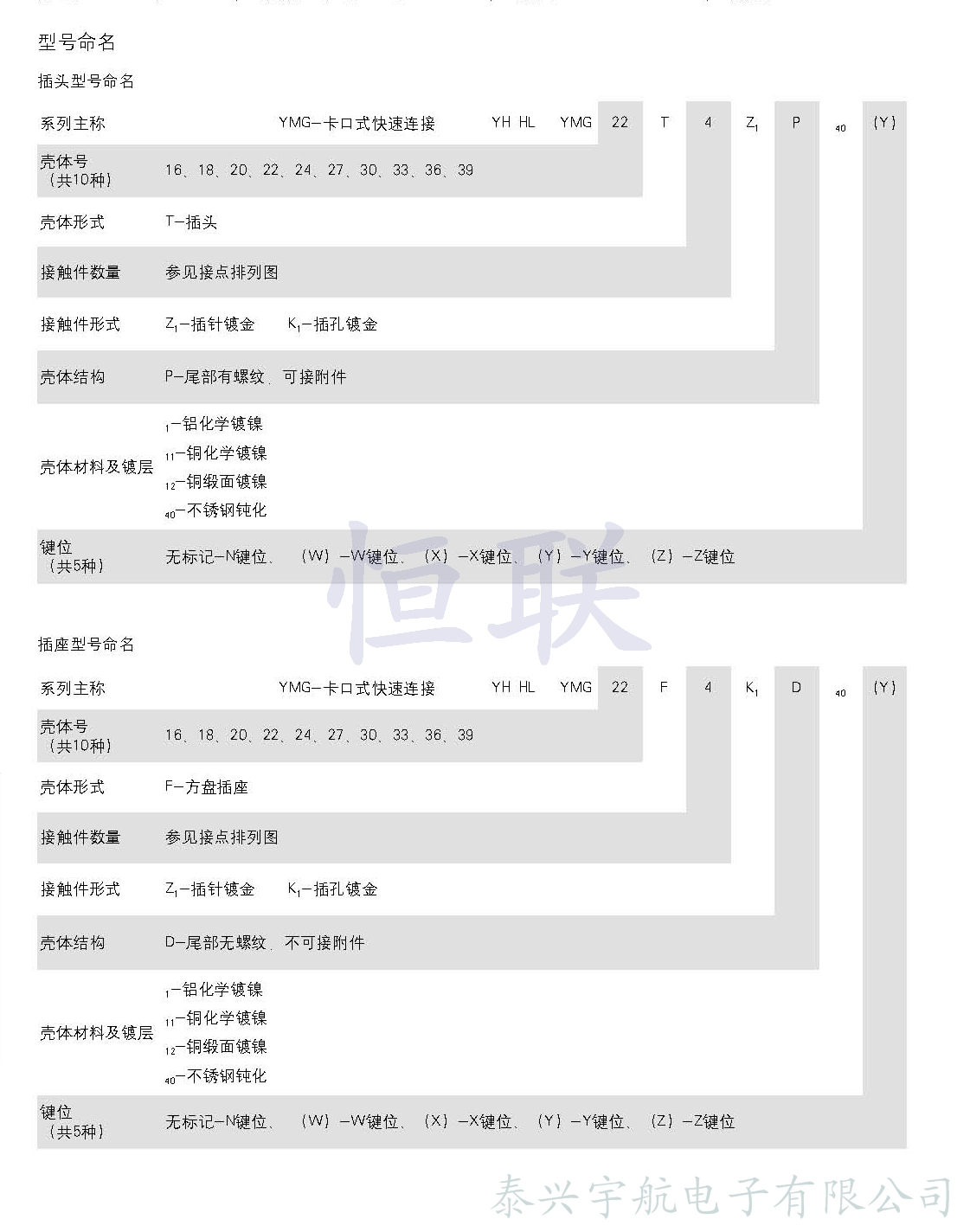 該系列電連接器采用卡口式快速連接和分離,操作方便、連接可靠、五鍵定位,具有盲插和防誤插功能,接觸件采用高可靠的雙曲面線簧插孔,具有插拔柔和、接觸電阻小的特點。該系列電連接器插頭插座均為壓接,廣泛應(yīng)用于潮濕、浸水等惡劣環(huán)境下的設(shè)備與電纜、電纜與電纜之間的電氣連接。